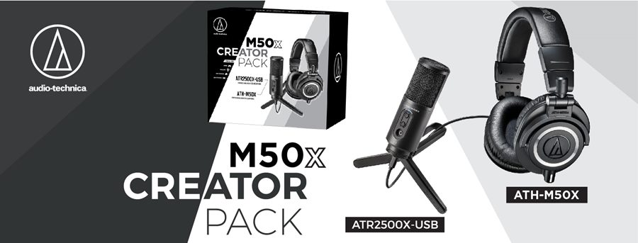 โดยภายในแพคประกอบด้วย หูฟังมอนิเตอร์ระดับมืออาชีพแบบครอบหู รุ่น M50x หูฟังรุ่นเรือธงที่ขายดีที่สุดในตระกูล M-Series ที่มาพร้อมกับไมโครโฟนแบบคอนเดนเซอร์ (Condenser Microphone) รุ่นATR2500X-USB เพื่อตอบโจทย์การใช้งานสร้างสรรค์คอนเทนต์ระดับมืออาชีพได้อย่างลงตัว