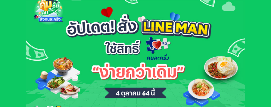 LINE MAN ตัวจริง “คนละครึ่ง” ครองร้านคนละครึ่งเยอะสุดทั่วไทย อัดโปรคุ้มคนละชั้นเพิ่มเติมแบบจัดเต็มเอาใจคนไทย ส่งอาหาร ถึงมือไวไม่มีแวะ ไม่พ่วงออร์เดอร์ สั่ง “คนละครึ่ง” บนแอป LINE MAN ได้เลย https://lineman.onelink.me/1N3T/f17d6247