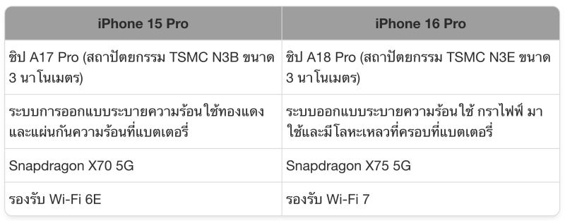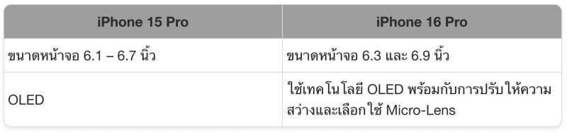 เทียบ iPhone 16 Series และ iPhone 15 Pro