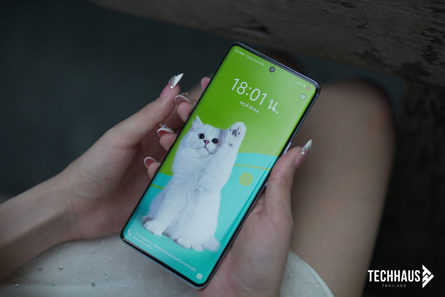 สำหรับสีที่เราได้มาทดสอบคือสีขาวมุก (Shell White) ที่ได้รับแรงบันดาลใจมาจากเปลือกหอยธรรมชาติทำให้ฝาหลังมีลวดลายออกมาคล้าย ๆ ที่ผ่านการแกะสลักเส้นผ่านสัมผัสกว่า 13 ล้านเส้น Photolithography ผ่านเทคโนโลยีที่เรียกว่า สะท้อนเป็นสีฟ้า ดูมีชีวิตชีวา