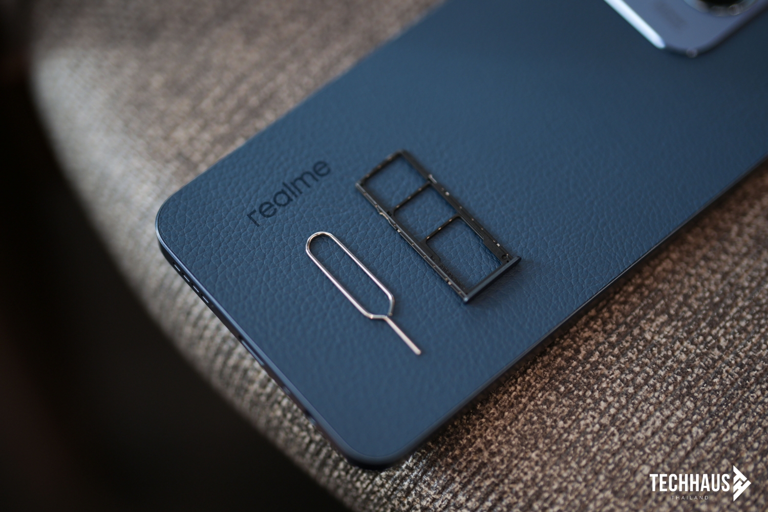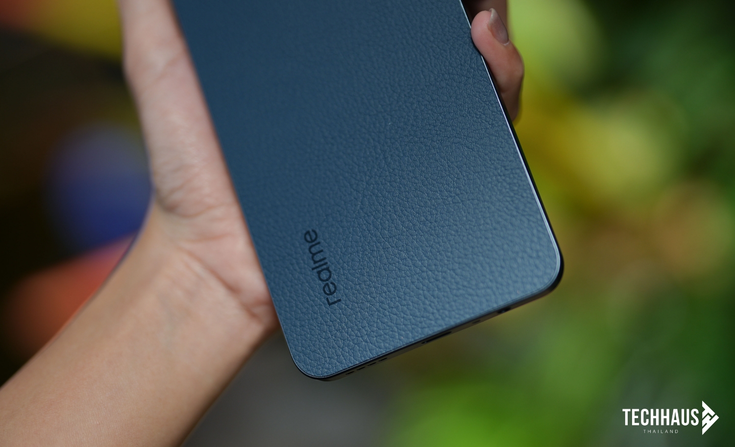 พลิกมาที่ฝาหลังตัวเครื่องกันบ้าง ตัวเครื่องด้านหลังมาพร้อมการออกแบบของเหลวเรืองแสง หนังวีแกนระดับพรีเมี่ยม realme C63 เป็นรุ่นแรกในตระกูล C series ที่ใช้หนังวีแก้นระดับพรีเมียมสำหรับฝาหลังให้สัมผัสลายลิ้นจี่ผิวหยาบ ซึ่งก่อนหน้านี้ใช้ในรุ่นเรือธงเท่านั้น ทำให้ยามเราหยิบขึ้นมาใช้งานสัมผัสได้ถึงความเรียบง่ายและหรูหรา