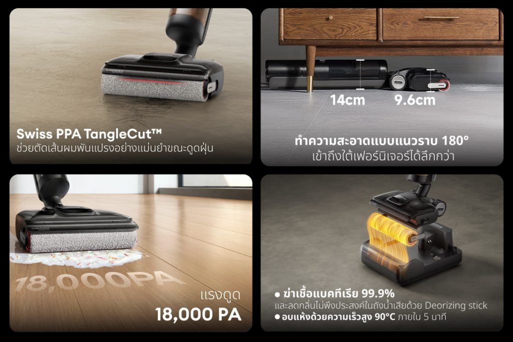 นอกจากนี้ยังมีระบบ HyperStream™ Detangling DuoBrush ที่ใช้แปรง TPU แบบคู่ ช่วยป้องกันเส้นผมพันแปรงและเพิ่มประสิทธิภาพในการทำความสะอาดทั้งพื้นกระเบื้องและพรม พร้อมด้วยเทคโนโลยี OmniDirt™ 2.0 เซนเซอร์อัจฉริยะสำหรับตรวจจับคราบสกปรกฝังลึก และระบบ TripleUp Tech ที่สลับโหมดอัตโนมัติระหว่างการดูดฝุ่นและถูพื้น รวมถึงระบบ AceClean DryBoard ที่ทำความสะอาดม็อบอัตโนมัติด้วยน้ำร้อน 80 องศา เพื่อความมั่นใจในความสะอาดสูงสุด