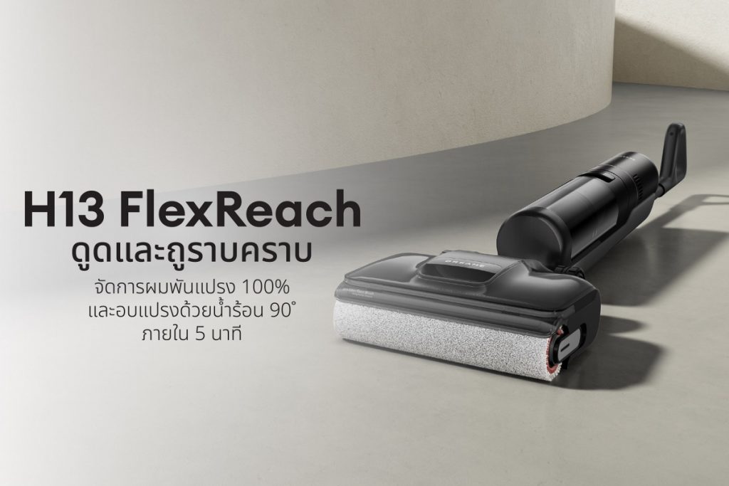 สำหรับ H13 FlexReach เครื่องดูดและถูพื้นอัจฉริยะรุ่นใหม่ล่าสุด มาพร้อมพลังแรงดูดสูงถึง 18,000 Pa สามารถจัดการคราบสกปรกขนาดใหญ่ได้ในครั้งเดียว ด้วยความสามารถทำความสะอาดพื้นที่ได้กว้างถึง 300 ตารางเมตรต่อการชาร์จเพียงครั้งเดียว โดดเด่นด้วยดีไซน์ที่สามารถทำความสะอาดในแนวราบได้ถึง 180 องศา เข้าถึงใต้เฟอร์นิเจอร์ได้ทุกซอกทุกมุม พร้อมล้อด้านหลังที่หมุนได้รอบทิศทางช่วยป้องกันรอยขีดข่วนบนพื้นผิว