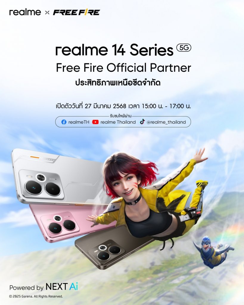 และถ้าคุณกำลังตกหลุมรักกับ realme 14 5G ไปแล้วล่ะก็ ขอบอกว่านี่ยังไม่หมด! realme ยังจัดเซอร์ไพรส์สุดพิเศษอีกหนึ่งอย่างที่จะทำให้เกมเมอร์ตัวจริงต้องกรี๊ดดังๆ นั่นคือ Freefire Gift Box สุดเอ็กซ์คลูซีฟที่บรรจุความฟินแบบจัดเต็ม! ภายในประกอบด้วยสติกเกอร์ธีม Free Fire สุดเท่ห์, Awaken Kelly Phone Stand ขาตั้งโทรศัพท์ลายตัวละครสุดเก๋, Power Bank ขนาด 6,000mAh และ Cooling Back Clip อุปกรณ์ระบายความร้อนสำหรับเกมเมอร์ตัวจริง