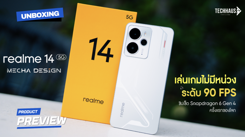 พรีวิวแกะกล่อง “realme 14 5G” แรงทะลุขีดจำกัดด้วย Snapdragon 6 Gen 4 ตัวแรกของโลกพร้อมดีไซน์ Mecha สุดเท่