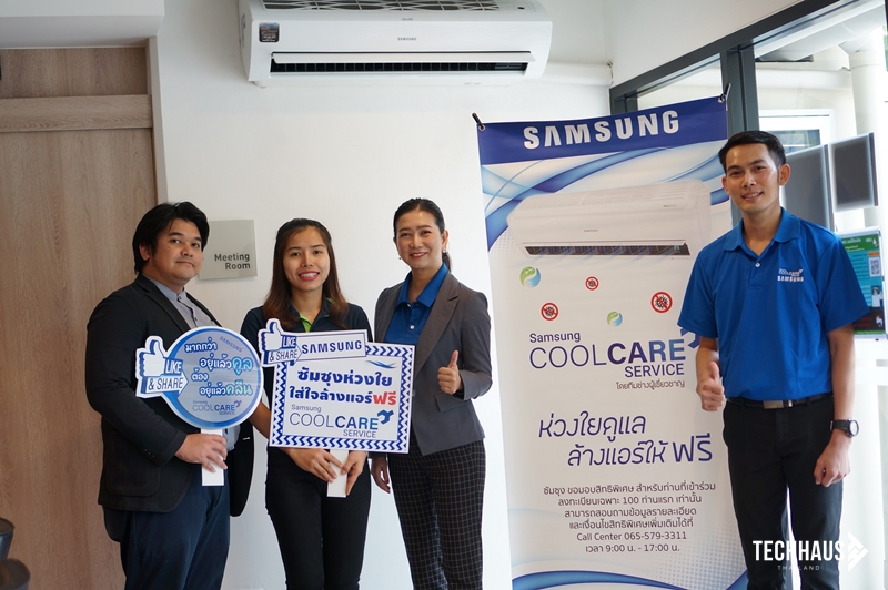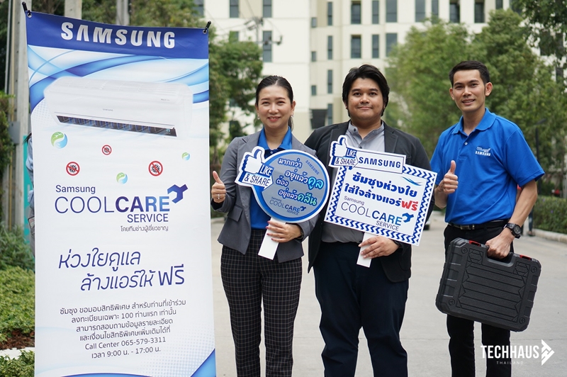 ล่าสุด ซัมซุง อิเลคโทรนิคส์ ส่งแคมเปญสุดพิเศษ ‘Cool Care Service’ นำทีมช่างผู้เชี่ยวชาญมาให้บริการดูแลล้างเครื่องปรับอากาศฟรี! กว่า 1200 ยูนิต สำหรับลูกค้าซัมซุงที่พักอาศัยอยู่ใน 12 โครงการคอนโดมิเนียมชั้นนำทั้งในกรุงเทพฯ และปริมณฑล ไม่ว่าจะเป็นโครงการของ คิว เฮาส์ (Q-house) แสนสิริ (Sansiri) พฤกษา (Pruksa) และอนันดา เฮลิกซ์ (Ananda Helix)