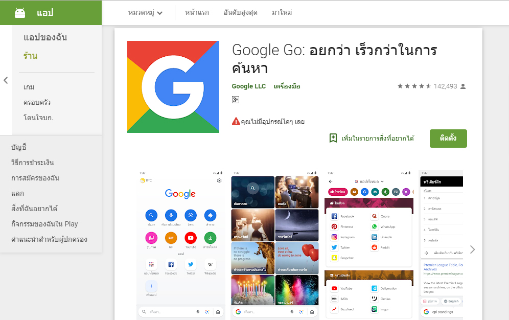 จุดเด่นของโปรแกรม Google Go ที่ดีกว่ารุ่นปกติคือ พื้นที่ใช้แค่ 5MB กินทรัพยากรโดยเฉพาะ RAM น้อยมาก แถมยังประหยัดในการหาข้อมูลถึง 40% และยังสามารถใช้งานฟีเจอร์เช่น Google Lens, แปลภาษาไทยไ้ด้ด้วย
