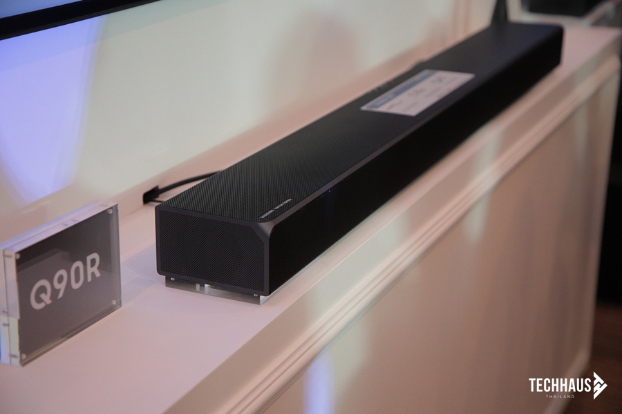 ซัมซุงออดิโอแล็บ (Samsung Audio Lab) ร่วมมือกับแบรนด์เครื่องเสียงชั้นนำระดับโลก ฮาร์แมน การ์ดอน  (Harman Kardon) พัฒนาซาวด์บาร์รุ่นใหม่ที่มอบประสบการณ์เสียงโฮมเธียร์เตอร์แบบรอบทิศทางที่ฉลาดมากยิ่งขึ้น มาพร้อมกับเทคโนโลยี อะแดปทีฟซาวด์ ที่มีความสามารถในการวิเคราะห์คอนเทนต์ต่าง ๆ ที่ผู้ใช้งานกำลังเปิดอยู่บนทีวี และเทคโนโลยีดังกล่าวจะช่วยปรับเสียงของคอนเทนต์เหล่านั้นให้เหมาะสมกับซีนต่าง ๆ ที่ถูกตั้งค่าไว้แล้ว