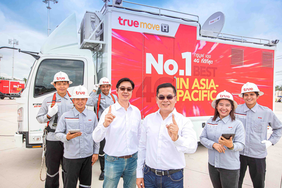 กลุ่มทรู โดยนายศิริพจน์ คุณากรพันธุ์ (ขวา) กรรมการผู้จัดการใหญ่ (ร่วม) บมจ. ทรู คอร์ปอเรชั่น พร้อมด้วยนายจิระชัย คุณากร (ซ้าย) หัวหน้าคณะผู้บริหารด้านปฏิบัติการโครงข่าย ร่วมภูมิใจกับนวัตกรรมผลงานจากทีมงานเน็ตเวิร์คทรูมูฟ เอช ที่พัฒนารถโมบายล์ชุมสายเคลื่อนที่เร็ว หรือรถ COW ( cell on wheel) ให้พร้อมรองรับสถานีฐาน 3G และ 4G และทุกคลื่นความถี่ที่หลากหลายของทรูมูฟ เอช
