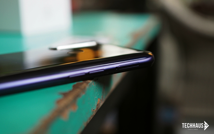 ด้านหลังส่วนบนเป็นตำแหน่งของ กล้องหลัง 4 ซึ่งประกอบไปด้วยกล้องหลักความละเอียด 12 ล้านพิกเซล f/1.8, กล้อง Ultra-Wide ความละเอียด 8 ล้านพิกเซล มุมกว้าง 119 องศา, กล้อง Depth สำหรับถ่าย Portrait 2 ล้านพิกเซล และกล้อง Macro 2 ล้านพิกเซล ถัดออกมาหน่อยเป็นตำแหน่งของเซ็นเซอร์สแกนลายนิ้วมือ