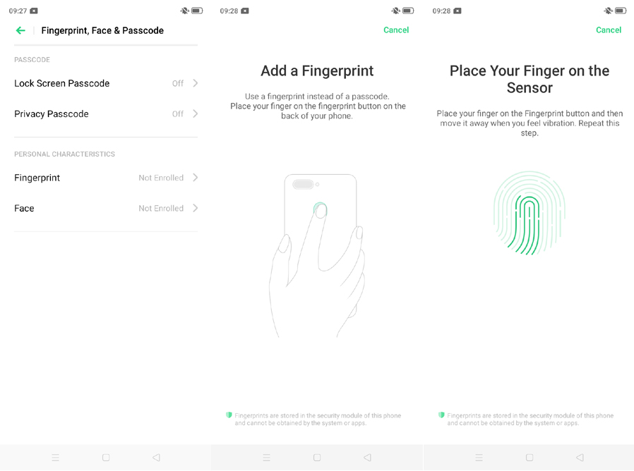 realme 5 มีเซ็นเซอร์รักษาความปลอดภัยให้เราได้เลือกใช้งานหลากหลายด้วยกันครับไม่ว่าจะเป็น เซ็นเซอร์สแกนลายนิ้วมือที่ติดตั้งอยู่ด้านหลังตัวเครื่อง (Fingerprint Scanner) เซ็นเซอร์สแกนลายนิ้วมือสำหรับปลุกการทำงานของเครื่อง หรือปลดล็อกหน้าจอได้ พร้อมทั้งสามารถเพิ่มลายนิ้วมือได้มากกว่า 1 ลายนิ้วมือและสุดท้ายการรหัสผ่านแบบพื้นๆ ที่เป็นมาตรฐานของสมาร์ทโฟนทั่วไป