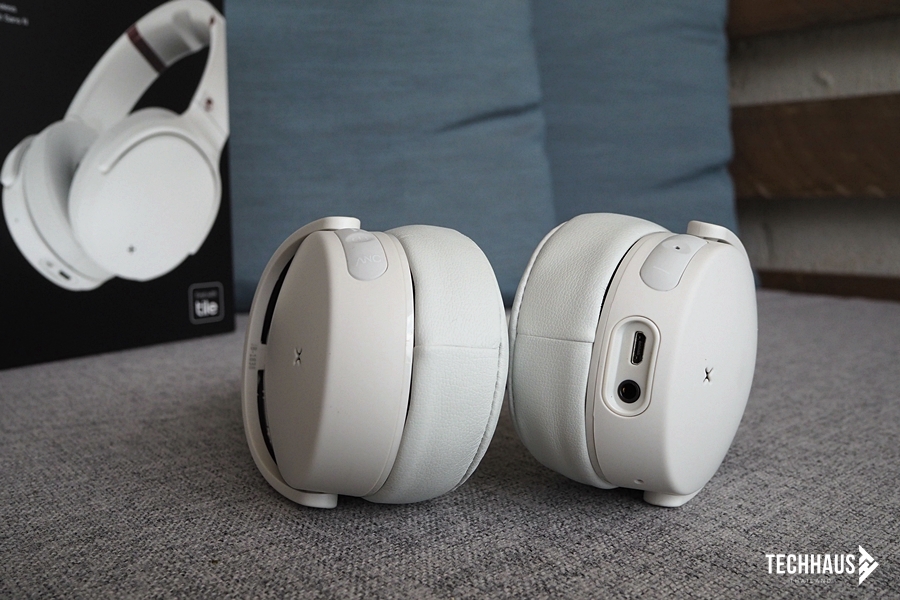 มาต่อกันที่ตัวเครื่องด้านซ้ายบ้างเราจะเห็นว่ามีจุดเล็กๆ ด้วยกันทั้งหมด 4 จุด โดยจุดดังกล่าวจะเป็นสัญลักษณ์ในการแสดงค่าไฟของแบตเตอรี่ ถัดลงมาเป็นตำแหน่งของปุ่มเปิด-ปิดเครื่อง การเช็คแบตเตอรี่เพียงแค่กดปุ่มเปิด-ปิดเครื่อง 1 ที ไฟสีฟ้าจะเปลี่ยนเป็นสีขาวเพื่อแสดงสถานะของแบตเตอรี่ และด้านล่างสุดคือปุ่มสำหรับใช้ในการตัดเสียงรบกวน(ANC) ให้เสียงชัดเจนและขจัดเสียงรบกวนได้ยอดเยี่ยม