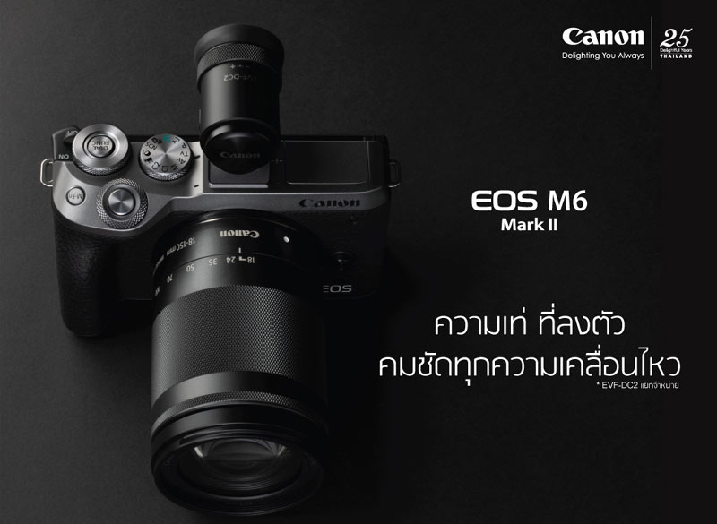 แคนนอน เปิดตัว Canon EOS M6 Mark II กล้องมิเรอร์เลสเปลี่ยนเลนส์ได้รุ่นล่าสุดในตระกูล EOS M เพิ่มประสิทธิภาพในการล็อคและติดตามออโต้โฟกัสที่รวดเร็ว เพื่อการจับภาพได้แม้ในช่วงเวลาที่คาดไม่ถึง มาพร้อมขนาดกะทัดรัดและน้ำหนักเบา