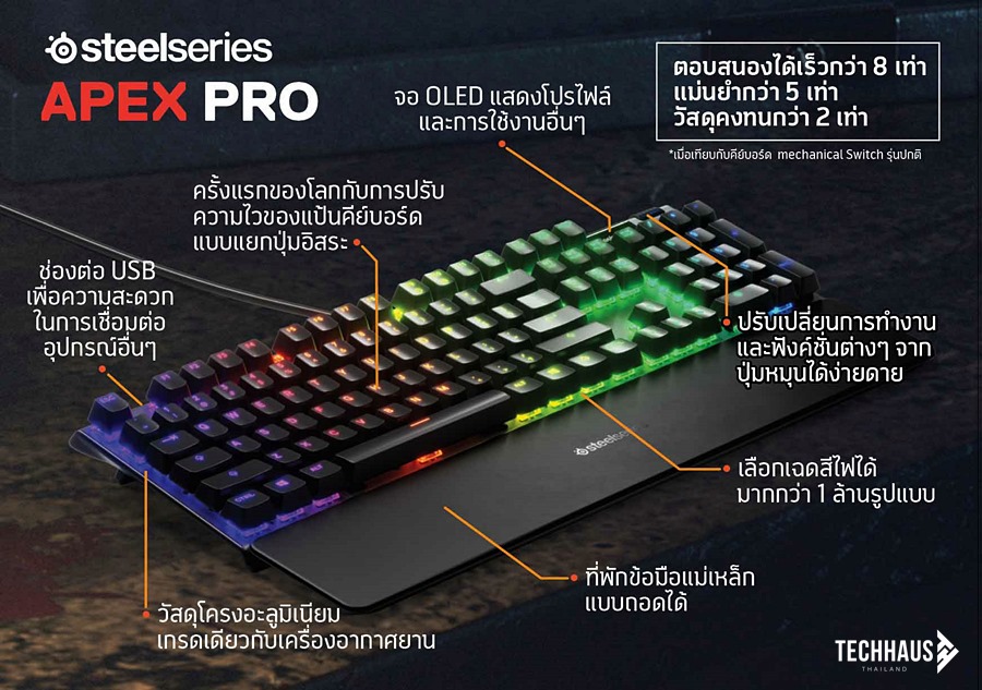 ส่วน Apex Pro และ Apex Pro TKL เป็นสุดยอดคีย์บอร์ดแบบ Mechanical รุ่นเรือธงของ SteelSeries ที่สามารถปรับแต่งรูปแบบตามความต้องการของผู้ใช้ได้มากที่สุดในโลก มาพร้อมกับประสิทธิภาพที่เหนือระดับยิ่งกว่าที่เคยมีมาก่อน ด้วยสวิทซ์ที่พัฒนาขึ้นใหม่ที่มีชื่อว่า OmniPoint