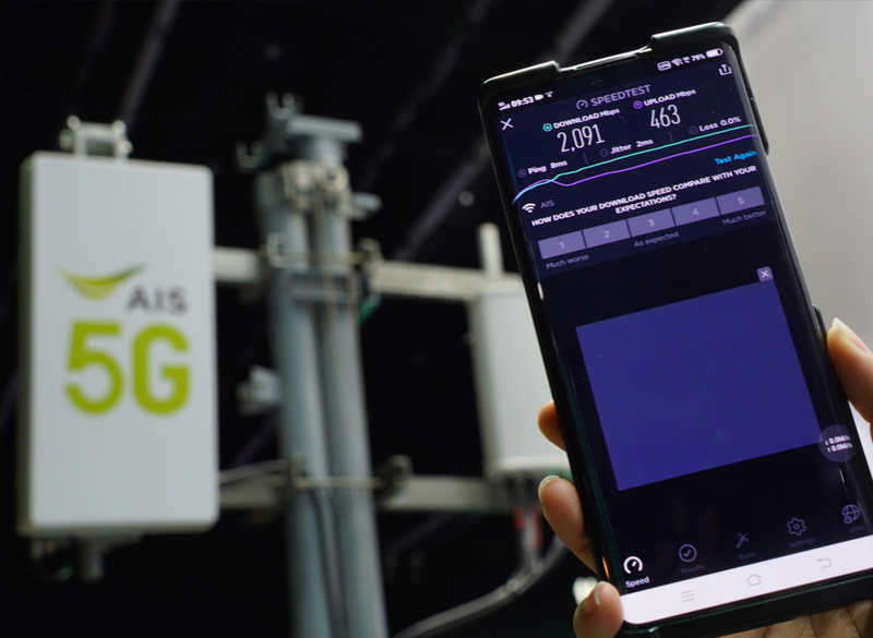 ครั้งแรกของไทยกับการโชว์ศักยภาพความเร็ว NEXT G+ ที่ควบรวมความเร็วระหว่าง 5G กับ AIS Super WiFi บนมือถือ 5G ที่สามารถทำความเร็วได้สูงสุดถึงกว่า 2 กิกะบิต ซึ่งถือเป็นสถิติสูงสุดของการทดสอบบนเครือข่าย 5G ในประเทศไทย
