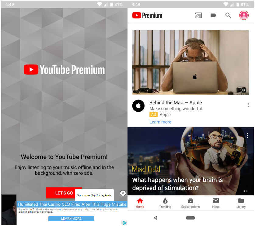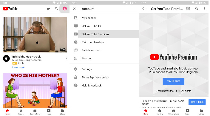 - Tap on Get YouTube Premium