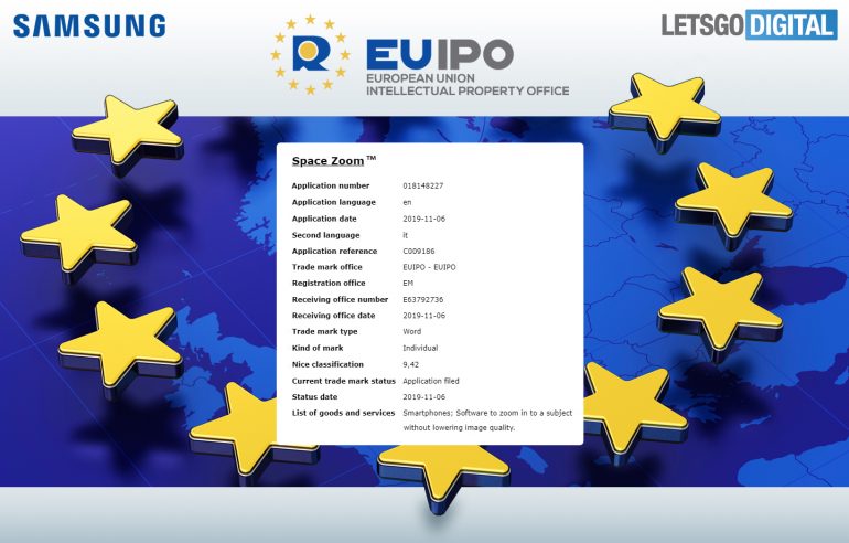 สำหรับคนที่ลุ้นเรื่องของกล้อง Samsung Galaxy S11 ที่เรียกว่าจะมีการเปลี่ยนแปลงกล้องครั้งใหญ่ ล่าสุดมี EUIPO ได้รับการจดชื่อของชื่อเทคโนโลยี Space Zoom คาดว่าจะเปิดตัวพร้อมกับ Samsung Galaxy S11 ที่เปิดตัวในเดือนกุมภาพันธ์ นี้