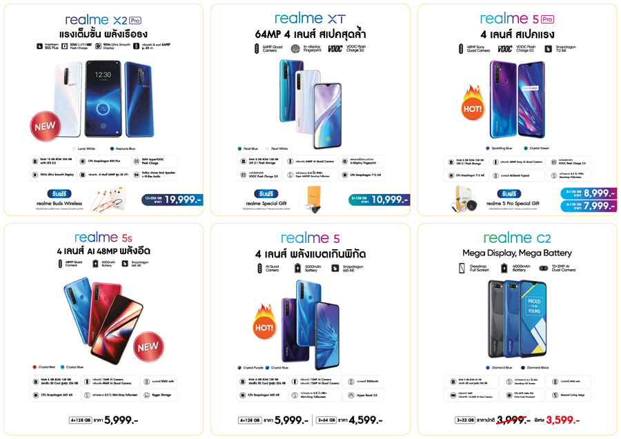 เมื่อซื้อ realme X2 Pro ‘แรงเต็มขั้น พลังเรือธง’ ราคาเริ่มต้นที่ 19,999 บาท รับฟรีทันทีหูฟัง realme Buds Wireless มูลค่า 1,999 บาท พร้อมการรับประกันตัวเครื่องนาน 24 เดือน และสิทธิ์การผ่อนชำระทางบัตรเครดิตที่ร่วมรายการ 0% นานสูงสุด 24 เดือน