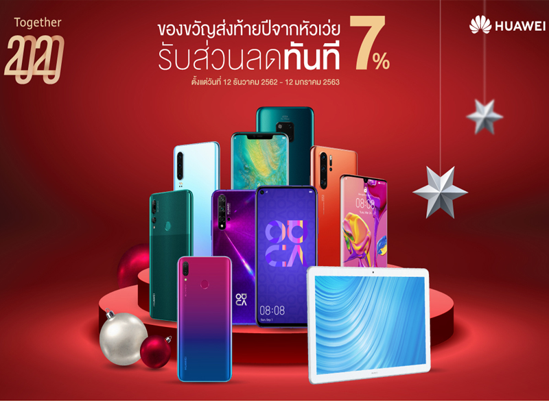 หัวเว่ยมอบของขวัญส่งท้ายปี จัดกองทัพสมาร์ทโฟนและแท็บเล็ต 7 รุ่นฮิต รับส่วนลดเพิ่มทันทีอีก 7% ในแคมเปญ “Together 2020”