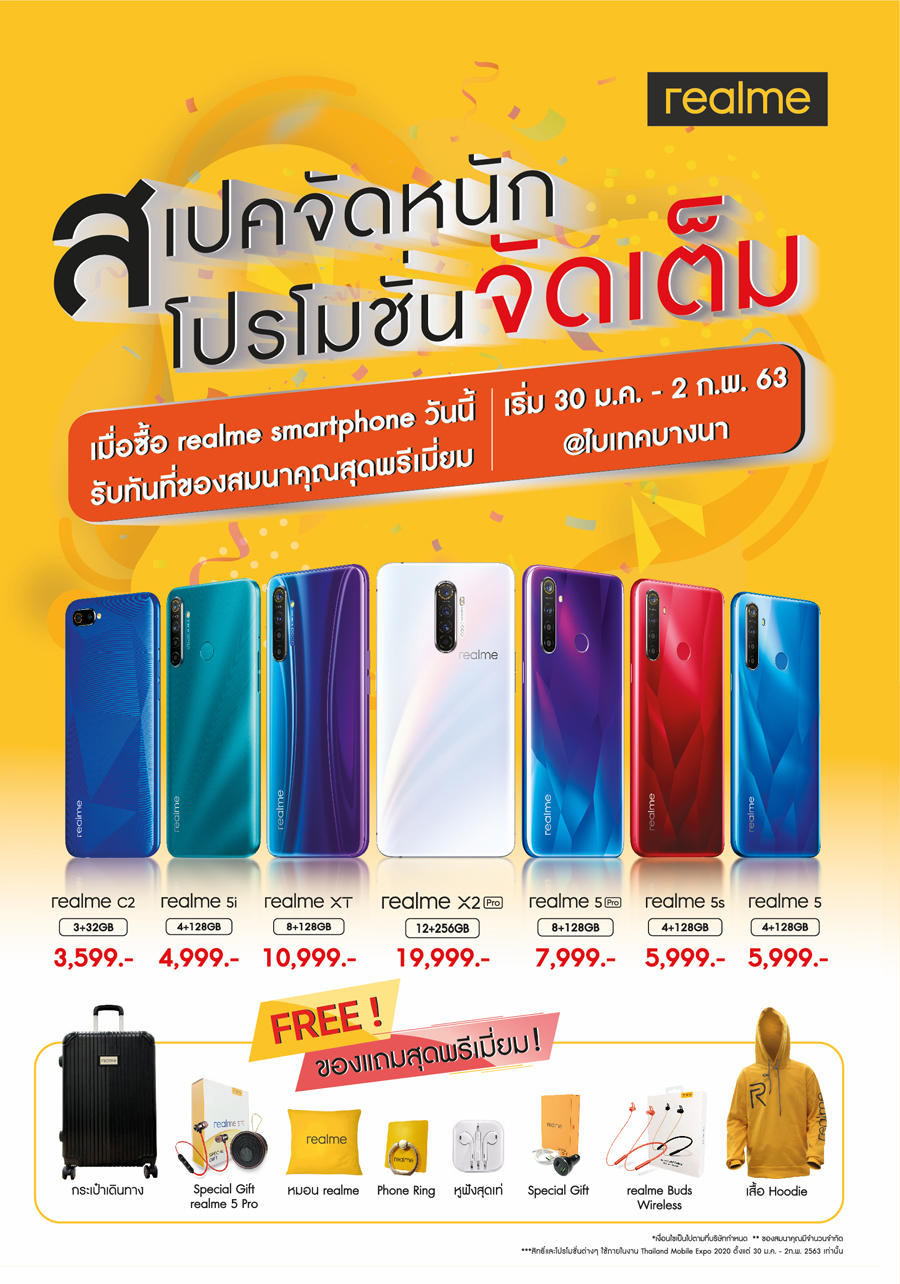 realme ยกขบวนสมาร์ทโฟนและอุปกรณ์เสริมพร้อมจัดเต็มโปรโมชั่นสุดคุ้ม และของแถมอีกเพียบ ในงาน Thailand Mobile Expo 2020