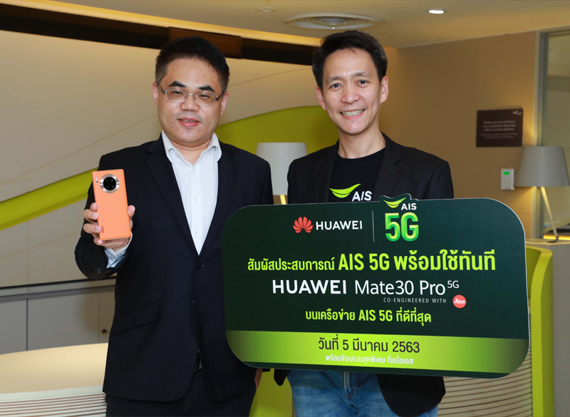 เดินหน้ามอบประสบการณ์ 5G ที่ล้ำหน้ายิ่งกว่า ผนึกกำลัง หัวเว่ย โดยนายอิงมาร์ หวาง ผู้อำนวยการ หัวเว่ย คอนซูมเมอร์ บิสสิเนส กรุ๊ป ประเทศไทย เตรียมเปิดตัวสุดยอดสมาร์ทโฟน 5G ระดับโลก รุ่นเรือธง “Huawei Mate 30 Pro 5G” ที่พร้อมใช้งาน 5G ได้ทันที รายแรกของไทย บนเครือข่าย AIS 5G ที่ดีที่สุด