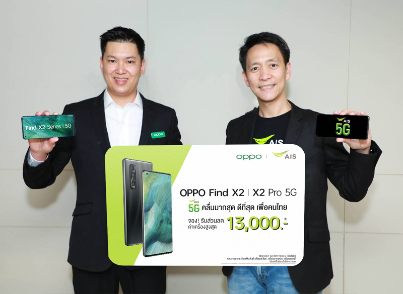 OPPO ผนึกเอไอเอส สร้างปรากฏการณ์ให้คนไทยได้สัมผัส OPPO Find X2 5G และ OPPO Find X2 Pro 5G สมาร์ทโฟนที่เป็นที่สุดแห่งนวัตกรรมและเทคโนโลยีระดับไฮเอนด์ พร้อม AIS 5G อย่างไร้ขีดจำกัด จัดโปรสุดเอ็กซ์คลูซีฟ ลดสูงสุด 13,000 บาท!