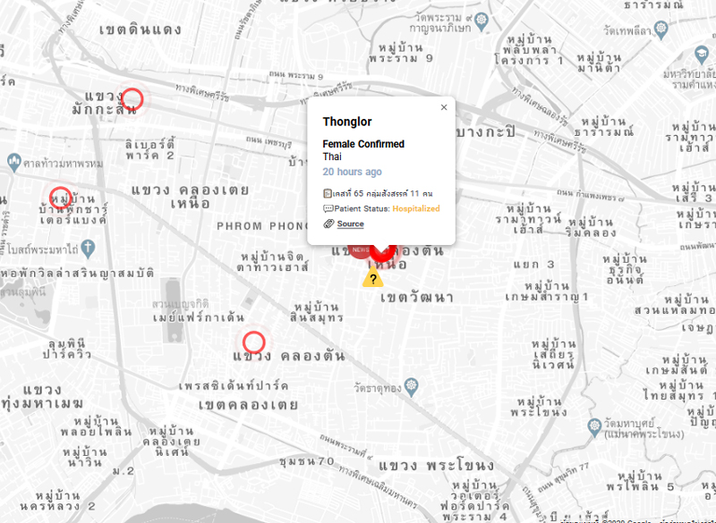 ทั้งนี้ covidtracker.5lab.co ซึ่งพัฒนาโดย 5Lab ที่จะบอกข้อมูลในเรื่องของผู้คนที่ต้องสงสัยว่าติดไวรัส Covid 19 ว่าตอนนี้อยู่ที่ไหนบ้าง และมีสถานที่บอกทั้งหมด 3 ประเภท