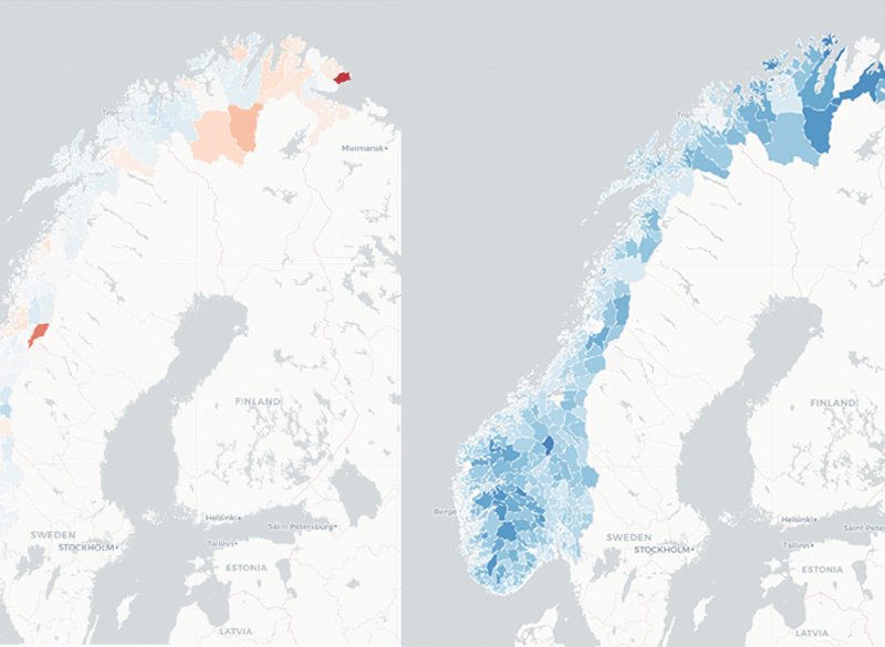เคนท์เองเกอ มอนเซน นักวิจัยอาวุโส ศูนย์วิจัยเทเลนอร์ กล่าวว่า “สีฟ้าเป็นสีที่ผมชอบที่สุดในช่วงวิกฤตนี้เลย นับจากรัฐบาลนอร์เวย์ประกาศใช้มาตรการล็อกดาวน์เมื่อวันที่ 12 มีนาคมที่ผ่านมา เราเห็นข้อมูลการเปลี่ยนแปลงของการอพยพเดินทางของผู้คนในนอร์เวย์อย่างมีนัยสำคัญ ในบางพื้นที่การเดินทางข้ามเขตเทศบาลนั้นลดลงถึง 65%