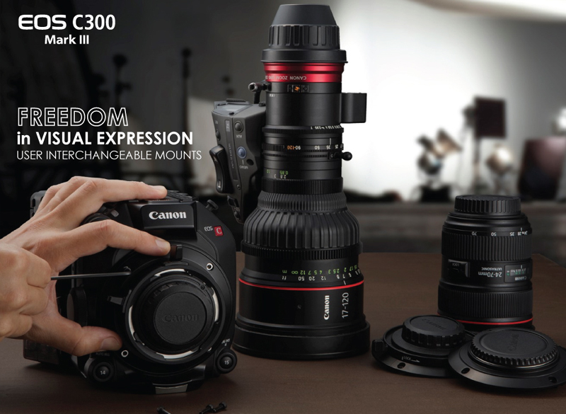 ด้วยการออกแบบกล้อง EOS C300 Mark III ให้สามารถแยกส่วนได้เช่นเดียวกับ EOS C500 Mark II ผู้ใช้จึงสามารถปรับแต่งกล้องให้เหมาะกับสภาพแวดล้อมในการทำงานได้ตามต้องการ รวมถึงใช้งานร่วมกับอุปกรณ์เสริมต่าง ๆ ซึ่งมีให้เลือกหลากหลาย (แยกจำหน่าย) หรือจะติดเมาท์เพิ่มเติม (แยกจำหน่าย) เพื่อให้ผู้ใช้สามารถเปลี่ยนเมาท์ของตัวกล้องจากเมาท์ EF เป็นเมาท์สำหรับเลนส์ PL หรือ EF Cinema Lock ได้ เพื่อใช้งานร่วมกับกับเลนส์ประเภทต่างๆ ได้อีกด้วย