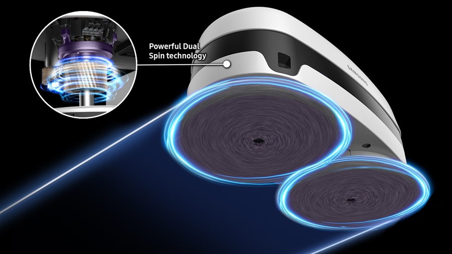 หุ่นยนต์ถูพื้น JetbotTM Mop รุ่น VR6000 ของซัมซุงช่วยให้คุณมั่นใจในความสะอาดมากขึ้น ด้วยเทคโนโลยี Dual Spin ให้การหมุนของมอเตอร์ทั้งสองตัวสูงถึง 5,500 รอบต่อนาที ช่วยให้หุ่นยนต์สามารถเคลื่อนที่ หมุน และทำความสะอาดได้พร้อมกัน ผ่านการเคลื่อนที่บนแผ่นผ้าทำความสะอาดทั้งสองข้างแทนการใช้ล้อ ทำให้น้ำหนักทั้งหมดของหุ่นยนต์ดูดฝุ่นกดลงบนแผ่นผ้าทำความสะอาด ช่วยให้การทำความสะอาดมีประสิทธิภาพมากกว่าด้วยแรงกดที่เพิ่มขึ้น ซึ่งทำงานร่วมกับระบบจ่ายน้ำอัตโนมัติ ให้คุณมั่นใจได้ว่าผ้าถูพื้นจะไม่แห้งระหว่างการทำความสะอาด นอกจากนี้ยังสามารถเลือกระหว่างผ้า Mother Yarn* เพื่อการกำจัดสิ่งสกปรกและคราบฝังแน่นต่างๆ หรือผ้าไมโครไฟเบอร์ สำหรับทำความสะอาดพื้นผิวที่ละเอียดอ่อน