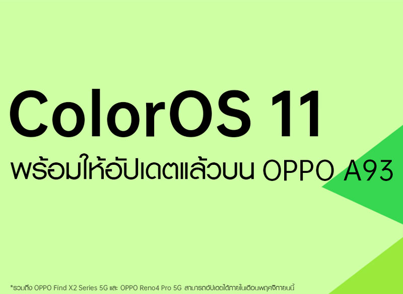 ครั้งนี้ OPPO แบรนด์สมาร์ทโฟนชั้นนำระดับโลก ได้ประกาศเปิดตัวการใช้งานระบบปฏิบัติการ ColorOs 11 Official Version (บน Android 11) บน OPPO A93 ในประเทศไทย