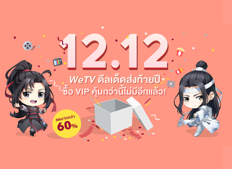 โปรเด็ดส่งท้ายปี รับเทศกาล 12.12 ด้วย 2 แพ็คเกจ VIP ราคาสุดคุ้ม ดีที่สุดเท่าที่เคยมีมา เตรียมยกขบวนคอนเทนต์คุณภาพที่ WeTV คัดสรรมาแล้ว ไม่ว่าจะเป็นซีรีส์ ภาพยนตร์ และรายการวาไรตี้ มาให้ได้ชมกันแบบจุใจกับ คอนเทนต์ทั้งจากไทย จีน เกาหลี ญี่ปุ่น และไต้หวัน