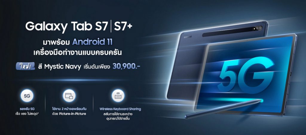 - Samsung Galaxy Tab S7+ (5G) สี Mystic Navy (RAM 6GB / ROM 128GB) = 33,900 บาท