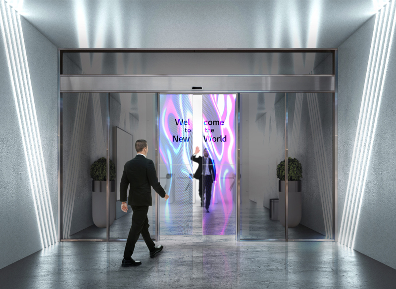 แอลจี อีเลคทรอนิคส์ ร่วมกับ อัสซ่า อะบลอย (ASSA ABLOY) ผู้นำระดับโลกด้านโซลูชั่นระบบประตูอย่างครบวงจร พัฒนาจอแสดงผลเชิงพาณิชย์แบบโปร่งแสง Transparent OLED สำหรับใช้เป็นประตูบานเลื่อนอัตโนมัติ ซึ่งนับเป็นครั้งแรกของโลกที่ประตูและจอแสดงผลเชิงพาณิชย์ผสานกันเป็นหนึ่งเดียว