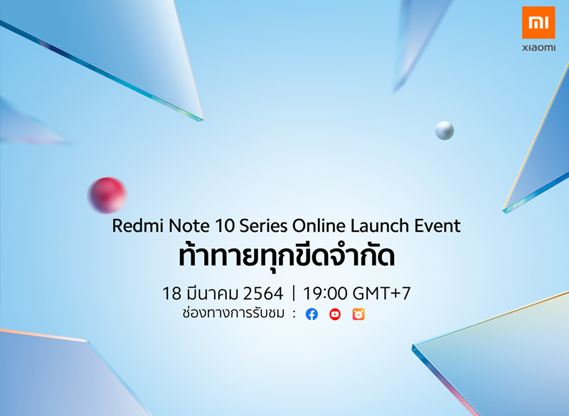 เสียวหมี่ ประเทศไทย ขอเรียนเชิญท่านสื่อมวลชนร่วมชมงานเปิดตัว “Redmi Note 10 Pro & Redmi Note 10” ในประเทศไทยอย่างเป็นทางการ