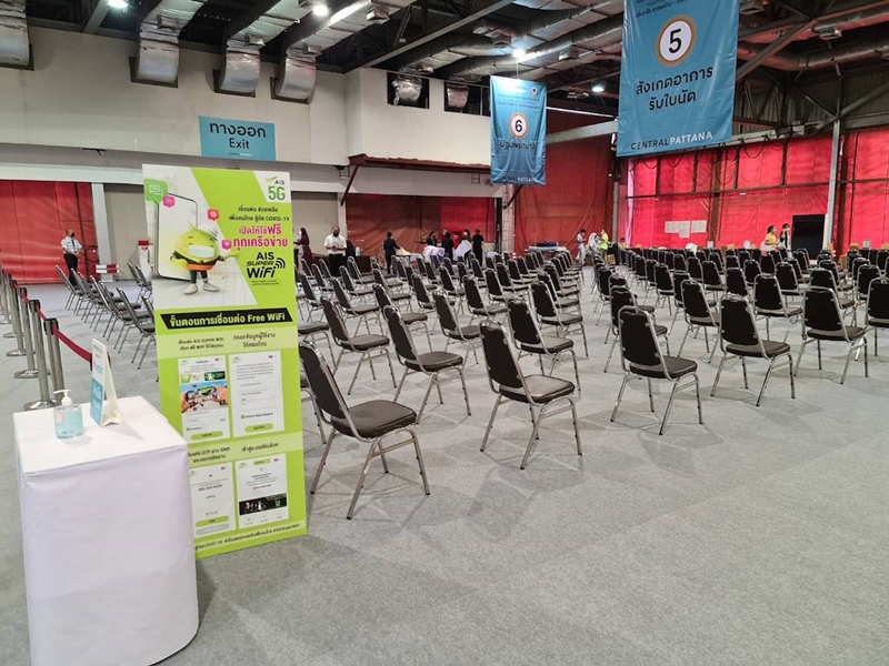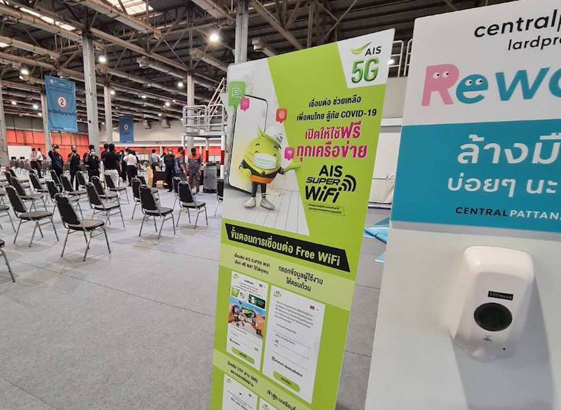 โดยวันนี้จุดฉีดวัคซีนที่ เซ็นทรัล ลาดพร้าว นับเป็นจุดแรกที่เปิดให้บริการ ซึ่งทาง AIS 5G ได้ดำเนินการเข้าติดตั้งสัญญาณเครือข่าย AIS 4G, 5G และ Free WIFI ที่จะช่วยอำนวยความสะดวกในการเชื่อมโยงตรวจสอบฐานข้อมูล