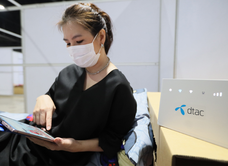 พร้อมมอบ dtac@Home เพื่อให้บริการ Free Wi-Fi รองรับงานสาธารณสุขที่โรงพยาบาลสนามบุษราคัม1-5 จำนวน 5,200 เตียง ที่อาคารชาเลนเจอร์ อิมแพค เมืองทองธานี พื้นที่กว่า 100,000 ตารางเมตร