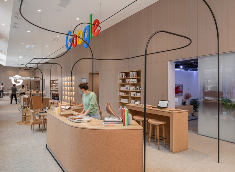 ซึ่งภายในของ Google Store มีการตกแต่งและวางเลย์เอาต์ใกล้เคียงกับ Apple Store ของ Apple