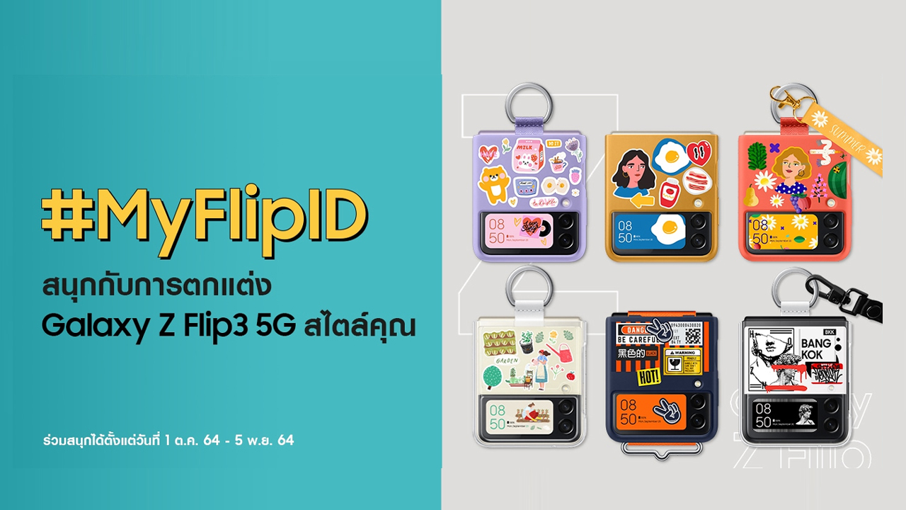 อย่ารอช้า! มาร่วมโชว์ Galaxy Z Flip3 5G ในแบบคุณได้แล้ว ตั้งแต่วันนี้ – 5 พฤศจิกายน 2564 พร้อมรอฟังผลรางวัลชนะเลิศได้ในวันที่ 12 พฤศจิกายน 2564 เวลา 18.00 น. ผ่าน Facebook Fan Page: Samsung Thailand หรือติดตามรายละเอียดเพิ่มเติมได้ที่ https://www.samsung.com/th/smartphones/galaxy-z-flip3-5g/myflipid-termandcondition