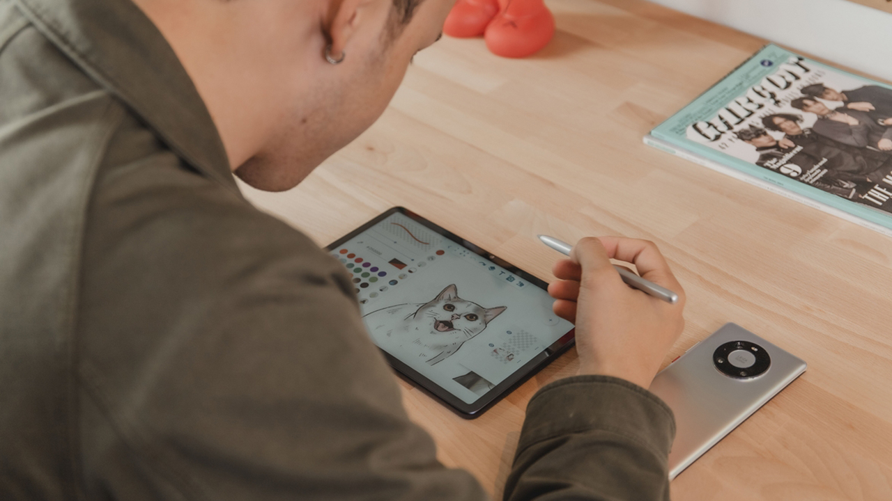 หนึ่งตัวเลือกหากแนะนำ คือแท็บเล็ตสายครีเอเตอร์โดยเฉพาะอย่าง HUAWEI MatePad Pro 12.6-inch ที่มาด้วยหน้าจอใหญ่ถึง 12.6 นิ้ว ความละเอียด 2K QHD 2560 x 1600 พิกเซล ใช้วาดเขียน ออกแบบ ตกแต่งงานอาร์ตโดยเฉพาะลายเส้นงานกราฟิกได้เจ๋งสุดๆ ผ่านแอปพลิเคชันฮิตๆ อย่าง Tayasui Sketches, Zen Brush 3, Huion Sketch, Concepts, SketchBook, Medibang Paint, Ibizi, และ Canva โดยไม่ต้องห่วงเรื่องความผิดเพี้ยนของสีเพราะมีค่าความแม่นยำสีสูงมาก