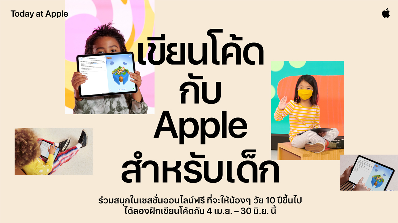 สามารถลงทะเบียนเข้าร่วมกิจกรรมได้ที่ http://apple.co/kids-code-with-apple-th