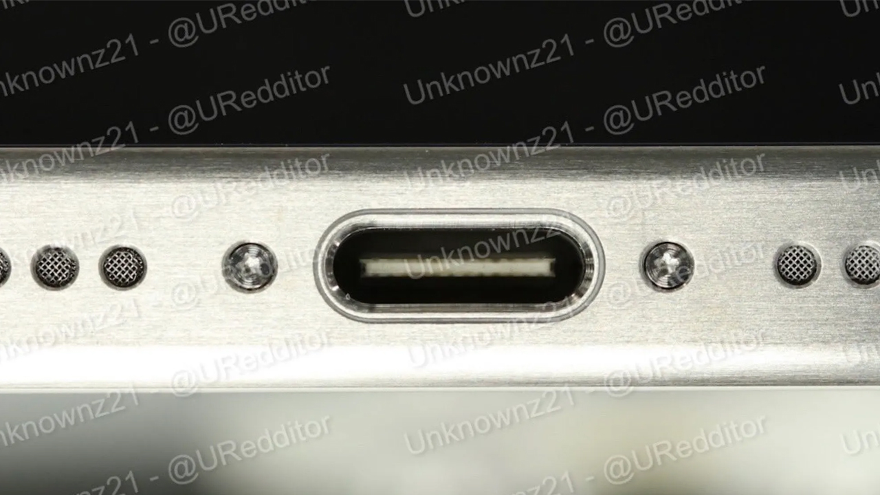 นี่เป็นรูปแบบเดียวกับ iPhone 14 Pro รุ่นปัจจุบัน เพียงแต่ใช้ USB-C แทน Lightning ภายในพอร์ต USB-C คุณจะเห็นเอฟเฟกต์แปรง ซึ่งเป็นสิ่งที่ Apple ทำกับผลิตภัณฑ์ของตนเท่านั้น