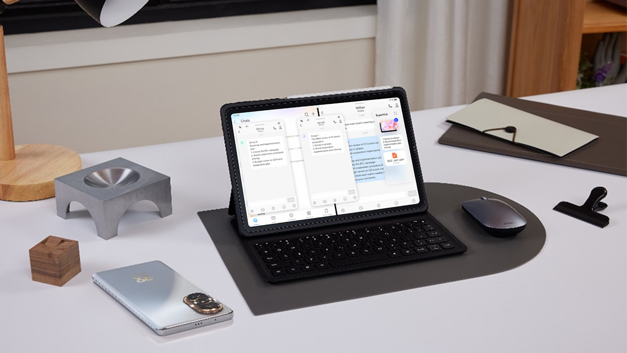 นอกจากนี้ผู้ใช้ HUAWEI MatePad 11 2023 ยังสามารถถ่ายโอนไฟล์ไปยังอุปกรณ์อื่นของหัวเว่ยได้อย่างสะดวกอีกด้วย เช่น คุณยังสามารถคัดลอกไฟล์พรีเซนเทชั่นจาก HUAWEI MatePad 11 2023 ไปยัง SuperHub และแชร์ไปยังสมาร์ทโฟนผ่านโหมดการเชื่อมต่อ Collaboration Mode ได้อย่างรวดเร็ว ไม่ต้องเสียเวลาประหยัดเวลาเพิ่มเวิร์กโฟลว์ทำงานได้แบบไม่มีสะดุด