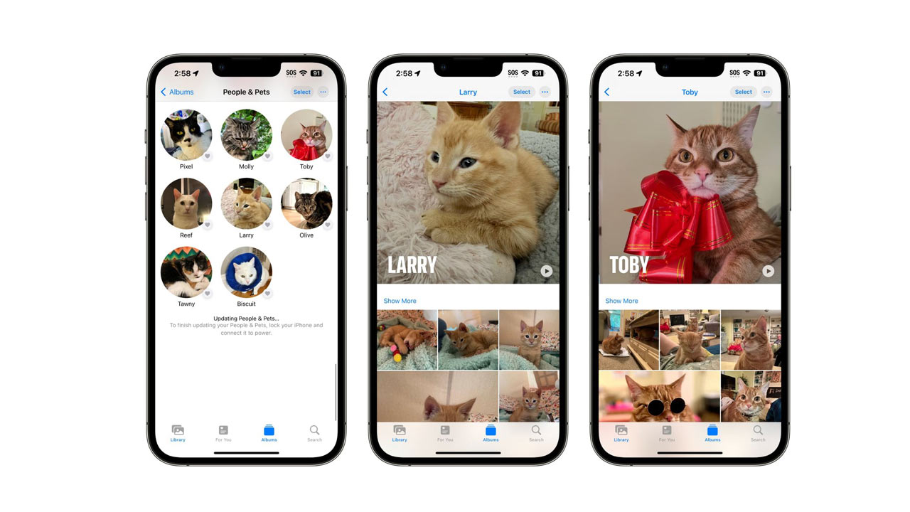 นอกจากนี้ยังมีการให้คุณเพิ่มข้อมูลเกี่ยวสัตว์เลี้ยงของคุณเพื่อความสะดวกในการใช้งานฟีเจอร์นี้มากขึ้น และเกิดความแม่นยำเหมาะกับมีสัตว์เลี้ยงสีเดียวกันหลายตัว เช่นการกำหนดว่ามีแมว 2 ตัวสีขาว แต่ให้แยกว่าตัวหนึงมีลายส้มทั้งคู่ แต่อีกตัวมีลายที่ต่างกัน สามารถบอกใน Photos ได้ทั้งหมด โดยจะมีปุ่ม Look Up เจาะจงไปถึงการระบุสายพันธุ์กันเลยทีเดียว