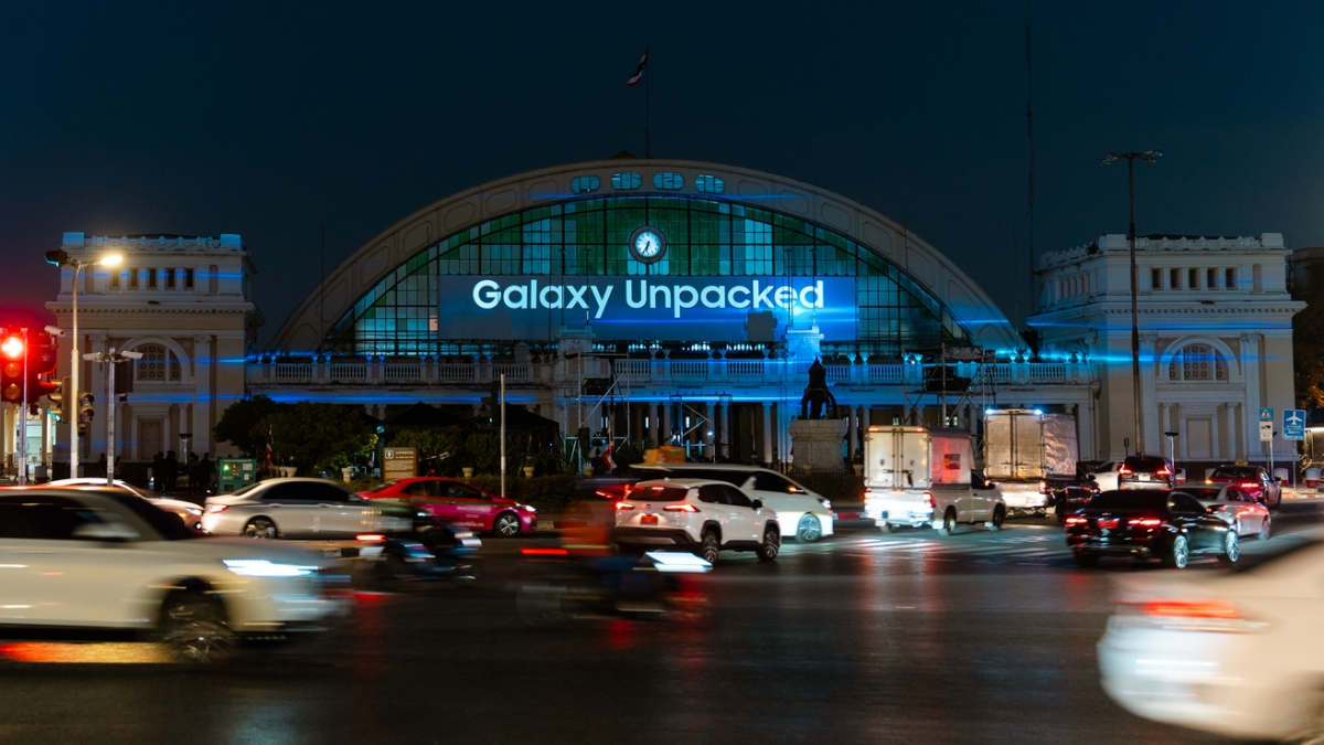 ถ่ายทอดความยิ่งใหญ่ผ่าน Video Mapping สุดยิ่งใหญ่ ใส่สุดๆ ทั้งแสง สีเสียงแบบจัดเต็ม ณสถานีรถไฟหัวลำโพง ชวนทุกคนเตรียมวาร์ปสู่ยุคใหม่ไปพร้อมกัน ด้วยข้อความปิดท้ายว่า “Galaxy AI is coming”