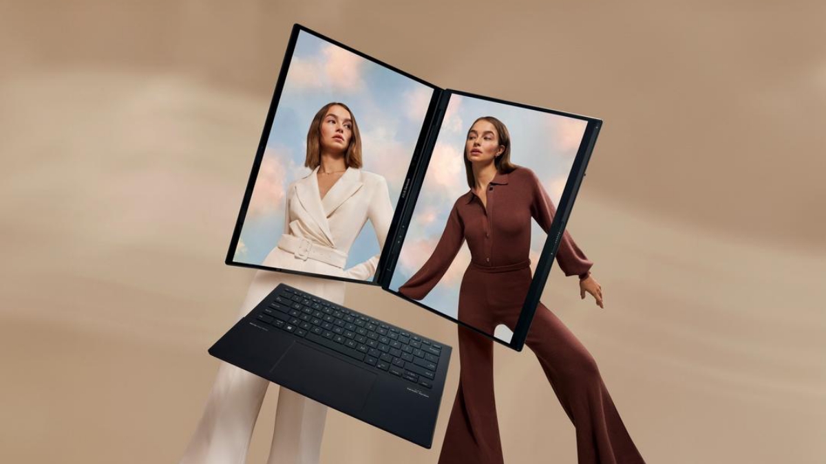 ผู้ใช้จะเพลิดเพลินไปกับจอแสดงผล ASUS Lumina OLED สองหน้าจอ ความคมชัดสูงสุดระดับ 3K 120Hzที่เชื่อมต่อกันด้วยบานพับ กางได้ 180องศา สามารถใช้งานได้ทั้งแนวตั้ง และแนวนอน ด้วยขาตั้งในตัวและคีย์บอร์ดที่ถอดแยกได้ ทำให้ใช้งานได้หลากหลายโหมด ไม่ว่าจะเป็นแบบโน้ตบุ๊กดั้งเดิม ขนาดจอ 14 นิ้ว อัตราส่วน 16:10, แบบหน้าจอคู่ เพิ่มเนื้อที่การใช้งานได้สูงสุด 19.8นิ้ว, โหมดเดสก์ท๊อป สำหรับผู้ที่เน้นการใช้งานข้อมูล เช่นโปรแกรมเมอร์ นักวิจัย เป็นต้นฯ และโหมดแชร์หน้าจอ (กาง 180 องศา) เหมาะกับการพรีเซ้นต์งาน และการประชุม มาพร้อมซอฟต์แวร์เฉพาะ ScreenXpert ที่ออกแบบมาสำหรับการทำงานสองหน้าจอ ช่วยให้ใช้งานมัลติทาสก์ได้อย่างยอดเยี่ยมยิ่งขึ้น