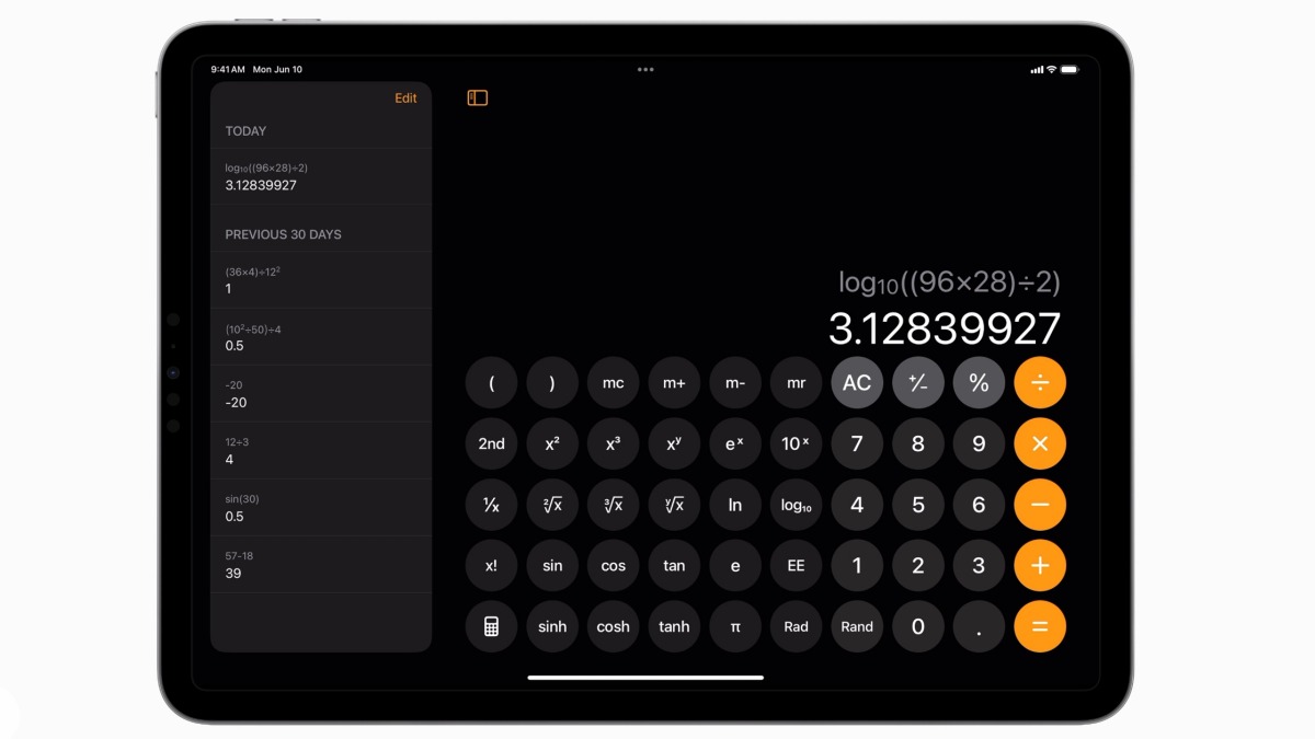 เครื่องคิดเลขพื้นฐานและเครื่องคิดเลขวิทยาศาสตร์บน iPad ให้ผู้ใช้ดูนิพจน์ที่สมบูรณ์ได้ง่ายๆ ก่อนจะเติมให้สมบูรณ์ และยังมีประวัติที่ให้ผู้ใช้ย้อนดูการคำนวณครั้งก่อนๆ ได้ รวมถึงการแปลงหน่วยที่ให้ผู้ใช้แปลงความยาว น้ำหนัก สกุลเงิน และอีกมากมายได้อย่างรวดเร็ว