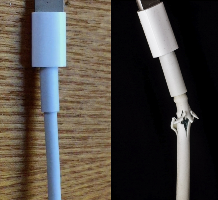 – ตรวจเช็คสายชาร์จ และตัว Adapter หากลอง Hard reset แล้ว ไม่ได้ผล ต้องลงตรวจอุปกรณ์ชาร์ต ดูว่าสายมีการหัก หรือฉีกขาดจุดใดหรือไม่ มีจุดไหนมีรอยไหม้หรือดูว่ามีการละลายบ้างหรือเปล่า อาจจะลองทดสอบดู โดยลองเอาสายชาร์จ สายอื่น แต่ต้องเป็นแบรนด์ของแอปเปิ้ล มาลองเสียบดู เพราะปัญหาอาจอยู่ที่สาย ต่อมาเช็ตตัว Adapter โดยลองสลับกับตัวอื่นเช่นกัน วิธีนี้ จะทำให้รู้ว่า จุดไหนที่เป็นปัญหา ตัวสาย หรือตัว Adapter