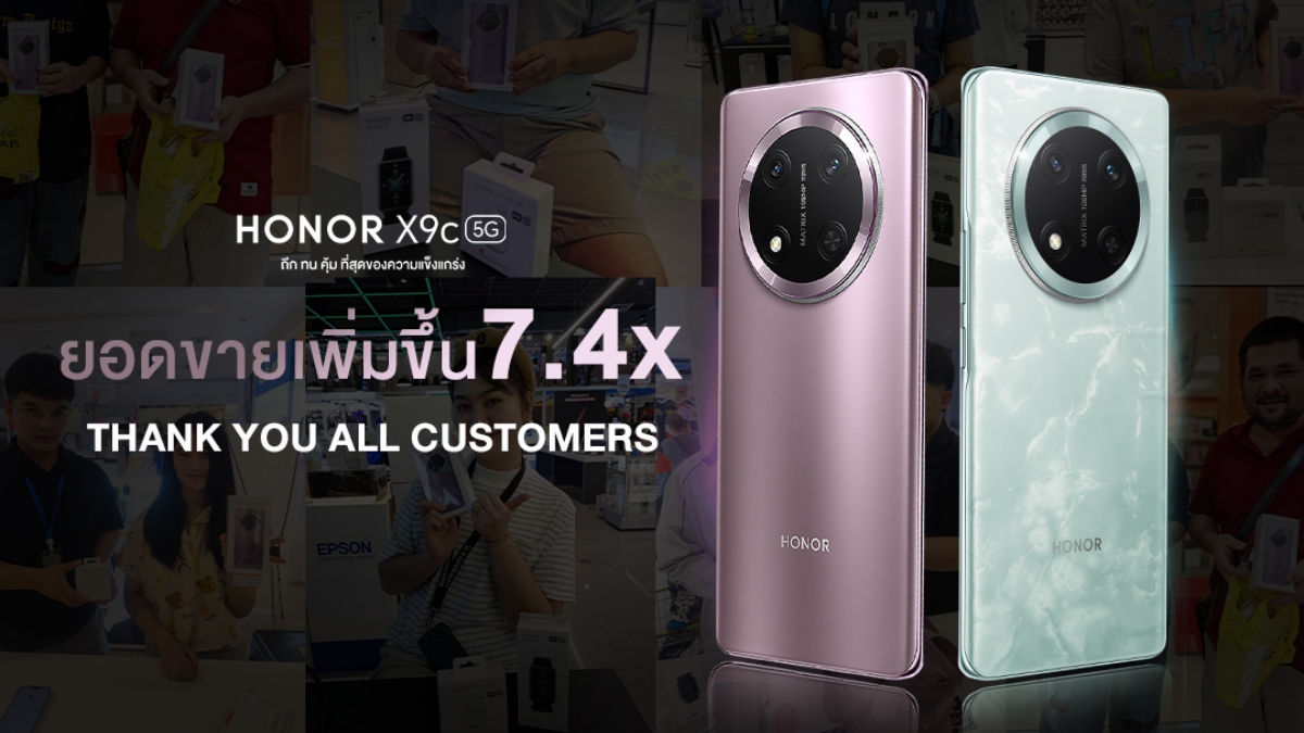 HONOR (ออเนอร์) ผู้ผลิตสมาร์ตโฟนระดับโลก ประกาศความสำเร็จครั้งใหม่กับการเปิดตัว HONOR X9c Series ที่สร้างปรากฏการณ์ยอดขายทะลุเป้าสูงสุดถึง 7.4 เท่าในวันแรกของการวางจำหน่าย สะท้อนความเชื่อมั่นของผู้บริโภคที่มีต่อนวัตกรรมและคุณภาพของแบรนด์ในตลาดสมาร์ตโฟนระดับกลาง