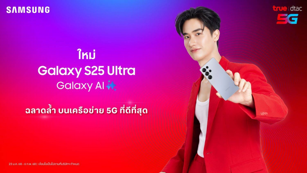 ทรู ดีแทค ประกาศความพร้อมเปิดจองสมาร์ตโฟนเรือธงรุ่นล่าสุด Samsung Galaxy S25 ที่มาพร้อมระบบ Galaxy AI นวัตกรรมปัญญาประดิษฐ์ที่จะมาปฏิวัติประสบการณ์การใช้งานสมาร์ตโฟนครั้งใหม่ บนเครือข่าย 5G ที่ครอบคลุมทั่วประเทศ พร้อมข้อเสนอสุดพิเศษมูลค่ารวมกว่า 40,000 บาท
